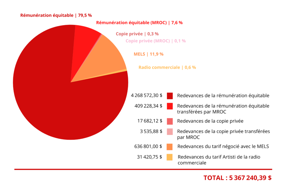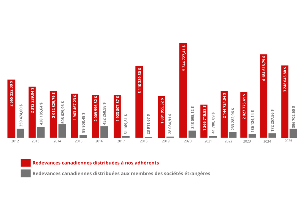 Redevances canadiennes distribuées à nos adhérents et aux membres des sociétés étrangères
